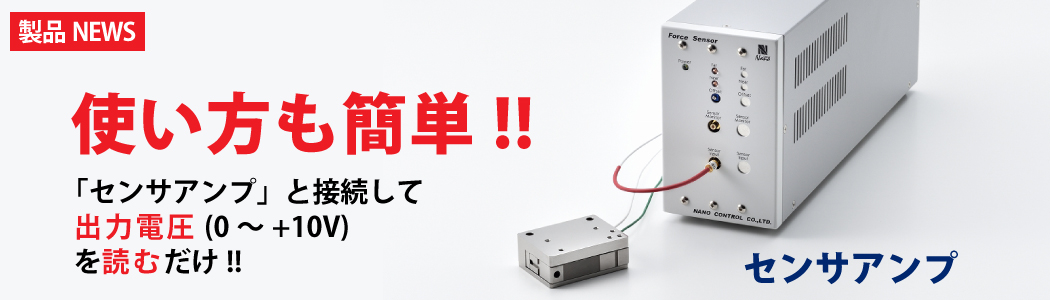 専用の「センサアンプ」に直接接続して、力に比例して出力される電圧値(0~+10V)を測定するだけです。